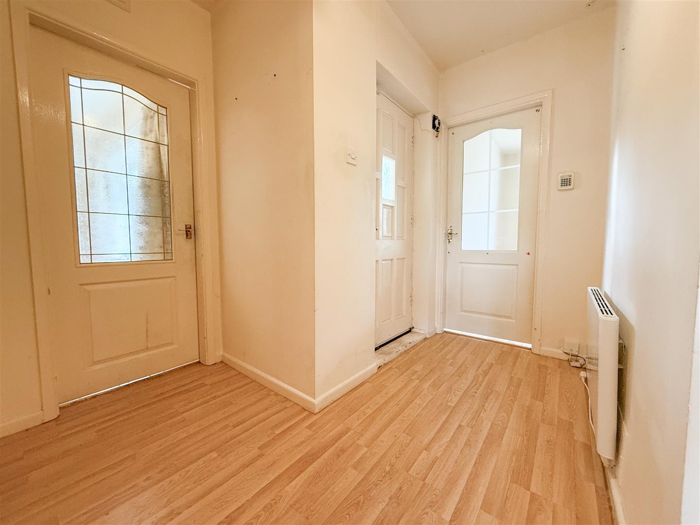 The property offers excellent potential and would benefit from a programme of modernisation throughout, allowing purchasers the opportunity to create a home tailored to the buyers own taste and style. A welcoming front porch featuring large leaded double-glazed side panels and a matching glazed UPVC entrance door, allowing plenty of natural light to enter. Finished with laminate flooring and painted brickwork, the space offers an inviting first impression and leads through to the main hallway.