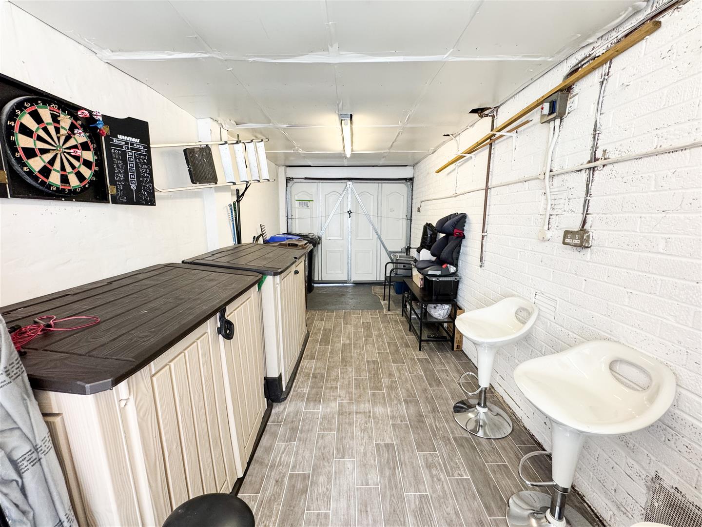With; An up and over door; Power and lighting; Window and entrance door to the rear elevation; Storage; Utility area;
