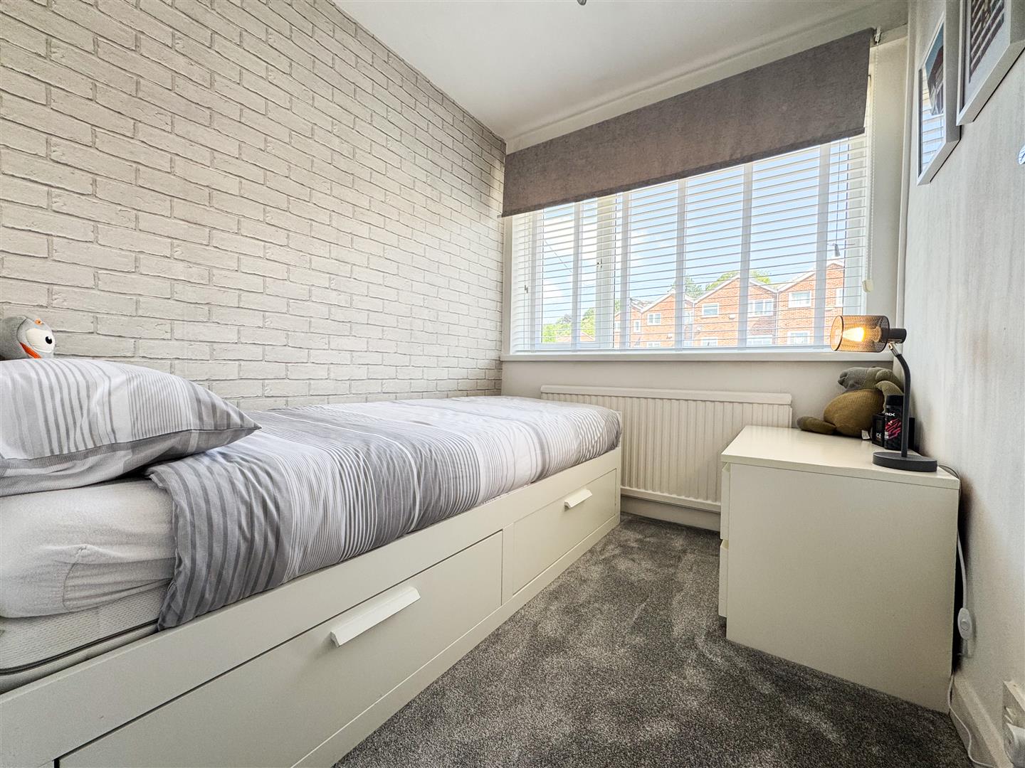 A single bedroom having; uPVC double glazed window to the front elevation; Fitted blind; Carpet flooring; Ceiling light point; Central heating radiator;