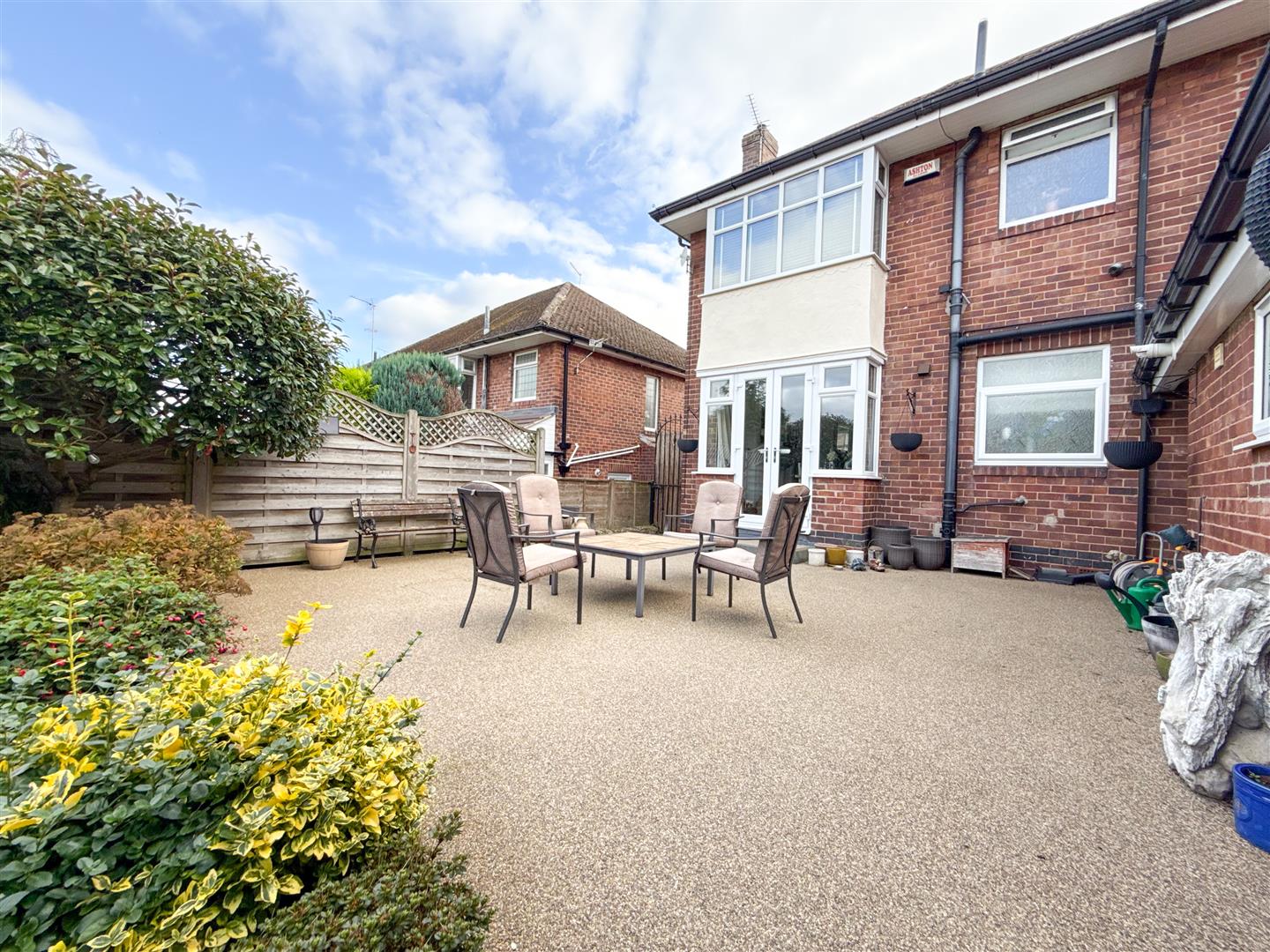 A beautiful, enclosed rear garden of generous proportions, offering a peaceful and private outdoor space. Leading from the property is a modern resin entertaining area, flowing onto a predominantly lawned section with a resin pathway that guides you to a further paved seating area at the rear. Surrounded by mature shrubs, plants, and trees, the garden enjoys lovely countryside views and includes a storage shed, fence and hedge boundaries, and a side gate providing access to the front of the property.