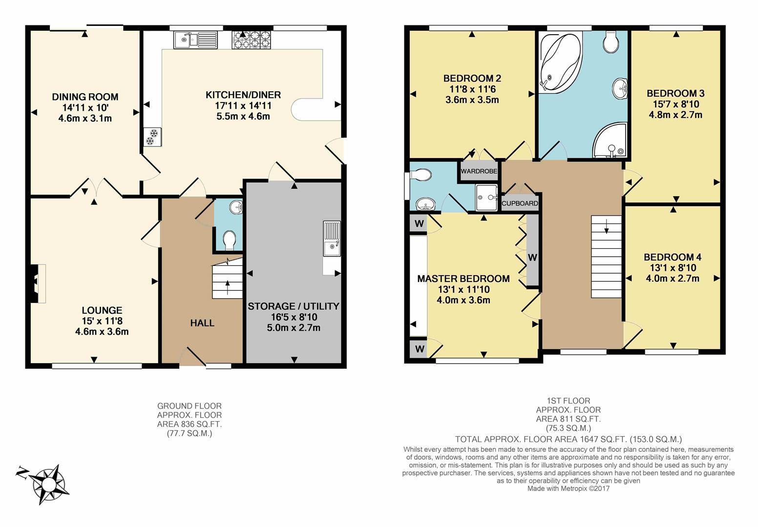 Carpeted stairs rise to the generous first floor landing with; uPVC double glazed window to the front elevation; Loft hatch access; Carpet flooring; Ceiling light point; Double doored landing storage area; Solid doors to the four bedrooms and family bathroom;