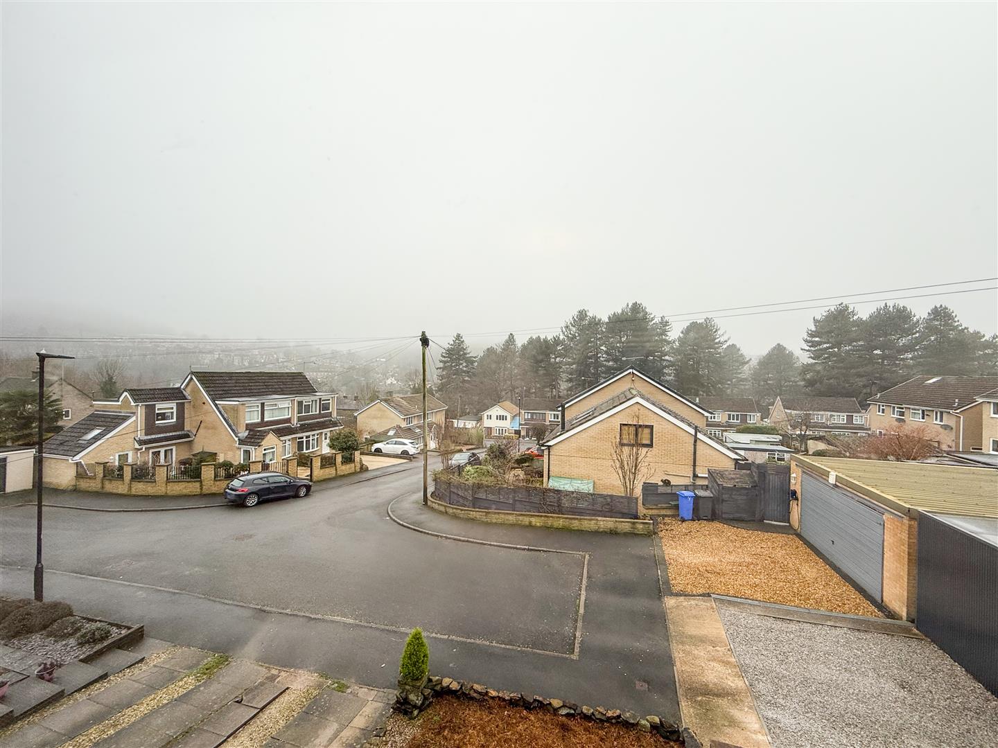 The front garden is low-maintenance, featuring an attractive arrangement of pebble beds and stone tiers.